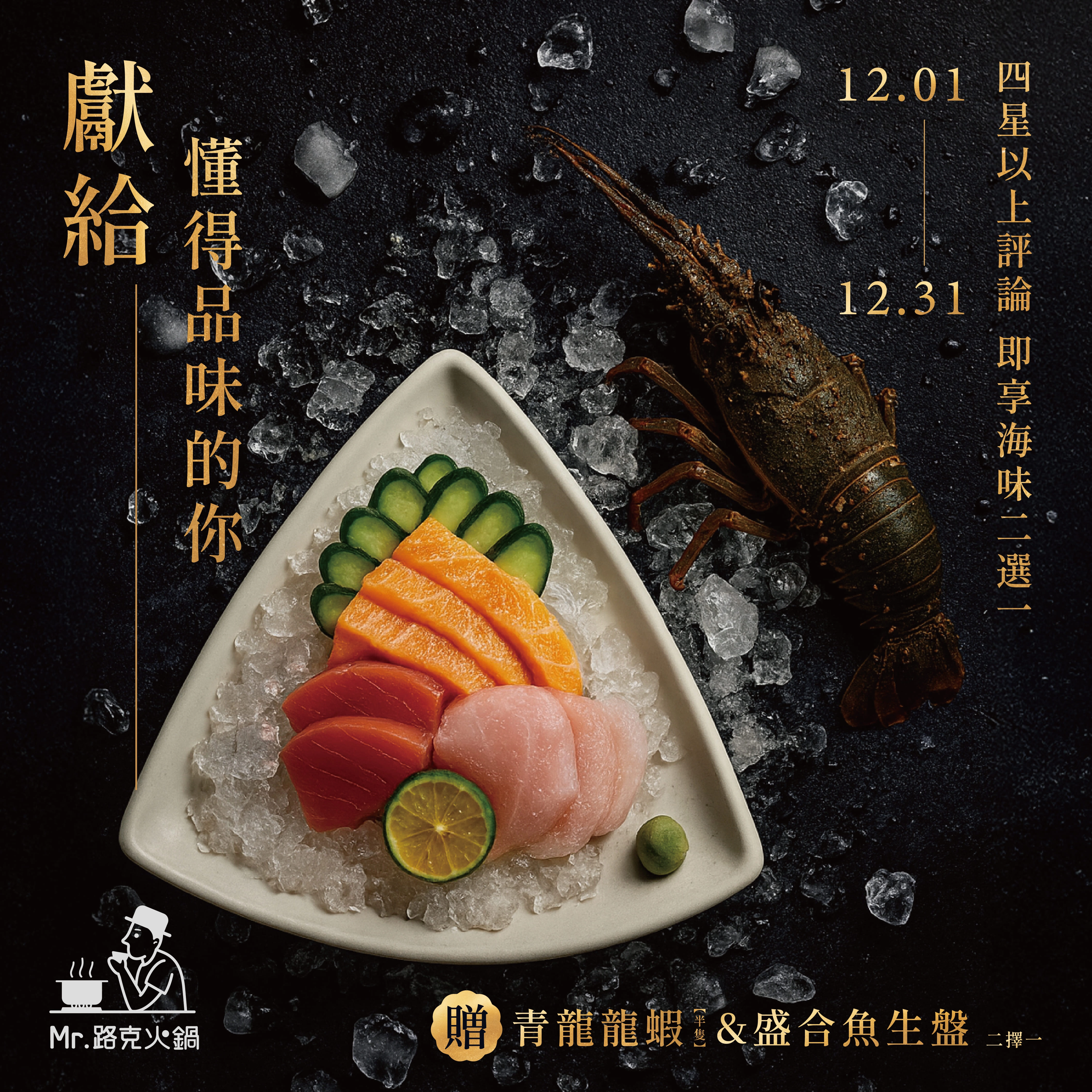 #五星好評加碼 #龍蝦生魚片好禮二選一