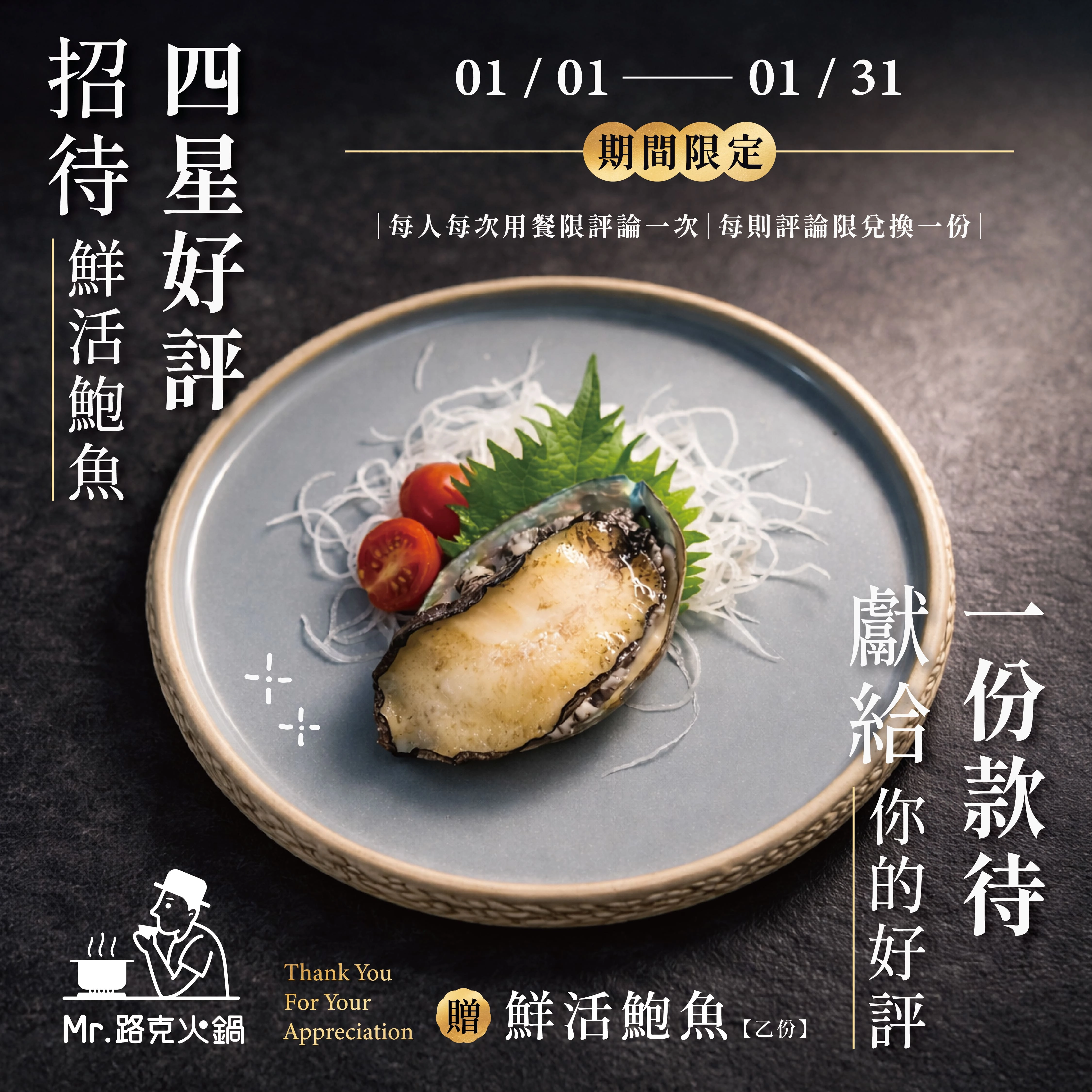 🎁 活動內容|四星以上好評贈「鮮活鮑魚」一份