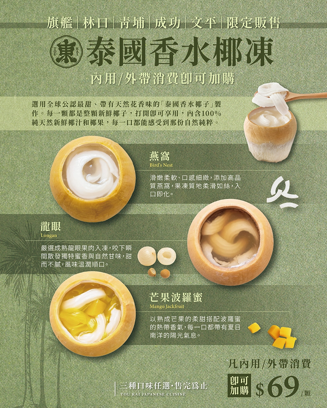 這次我們將泰國叻武里香水椰子——全球公認最香甜的品種,原封不動搬進東街餐桌!